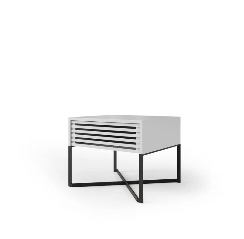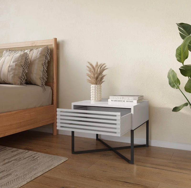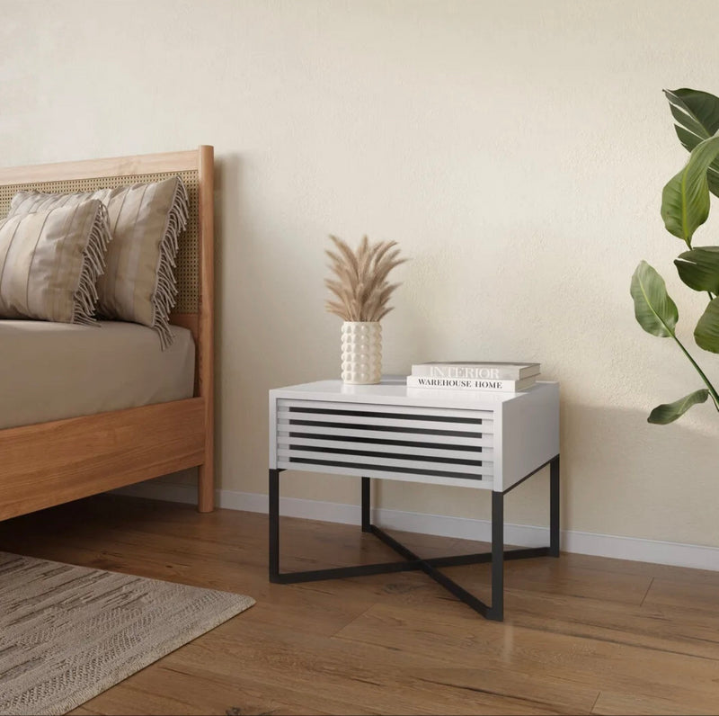 שידת צד בעיצוב מודרני ואלגנטי, הכוללת שתי מגירות מרווחות, אידיאלית לחדר השינה ולחללים נוספים בבית או במשרד.
