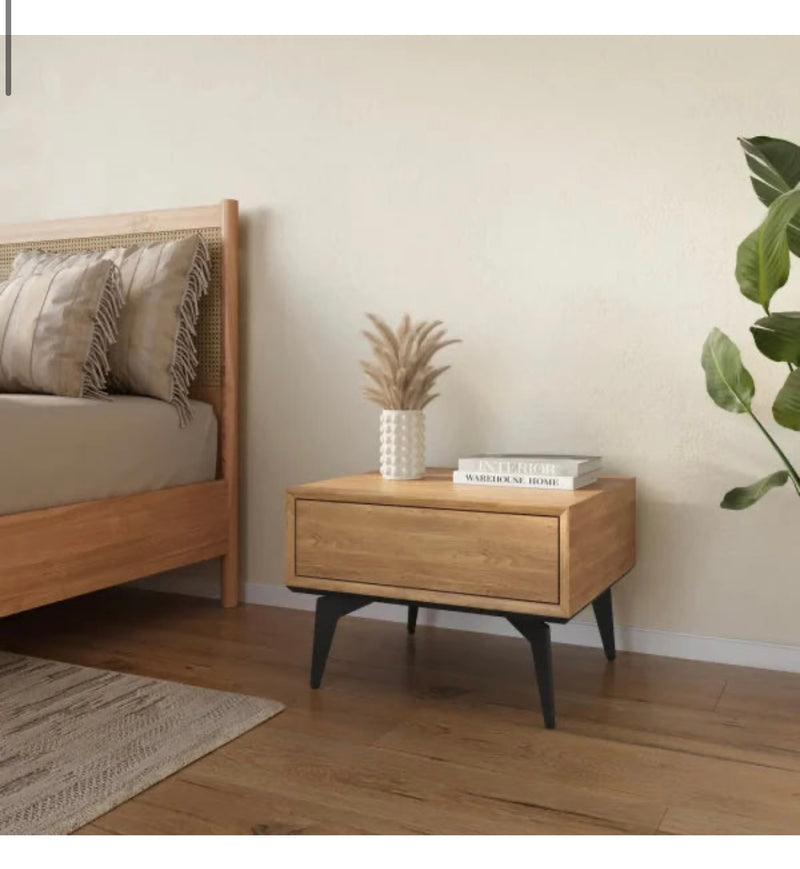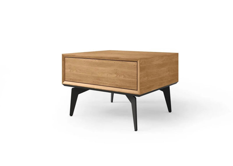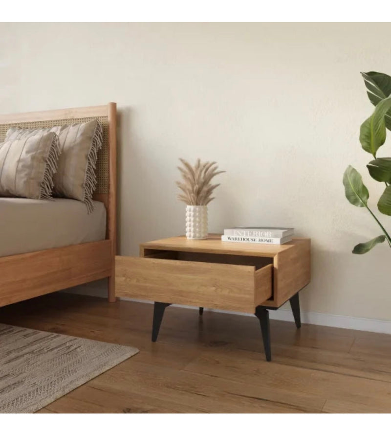 שידת צד מיטה בעיצוב יוקרתי, הכוללת מגירה עם מנגנון פתיחה בלחיצה.