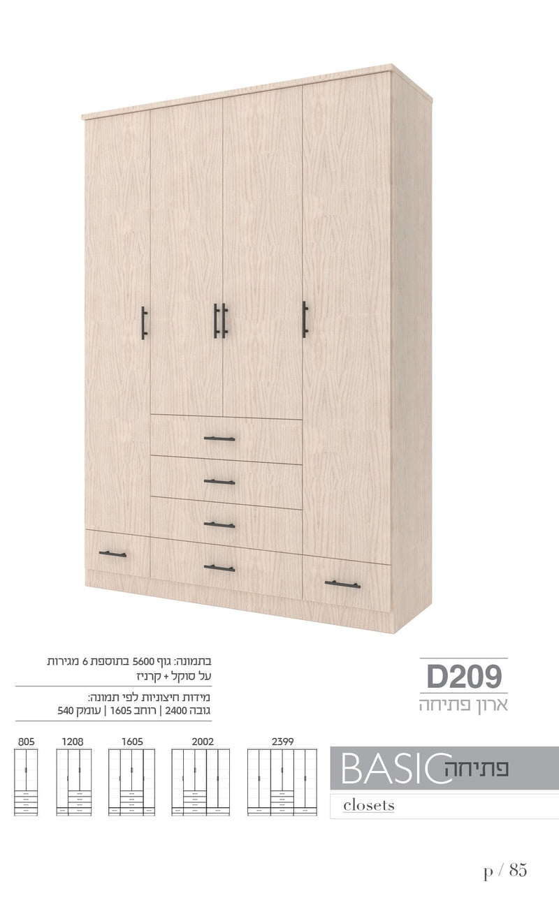 ארון פתיחה על סוקל +קרניז עם מגירות מיוצר ממלמין