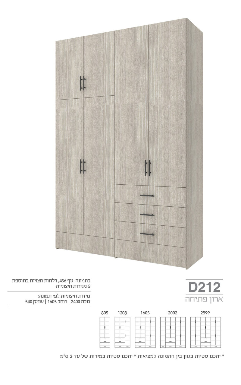 ארון פתיחה עם דלתות חצויות בתוספת מגירות חיצוניות מיוצר ממלמין